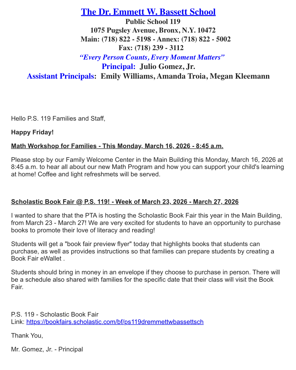 Scholstic Book Fair @ P.S. 119! - Week of March 23, 2026 - March 27, 2026